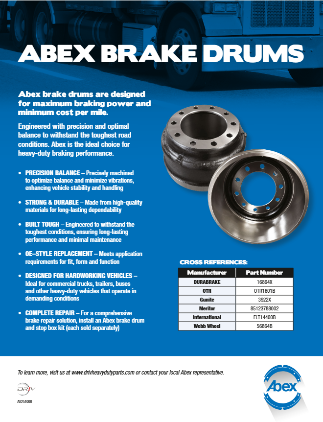Manufactured and tested to the highest standards, Abex™ commercial-grade brake products are engineered for maximum braking power and minimum cost per mile. Abex develops components that meet the demands of modern heavy-duty vehicles – just what you’d expect from one of the industry’s leading friction manufacturers.